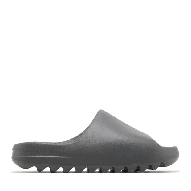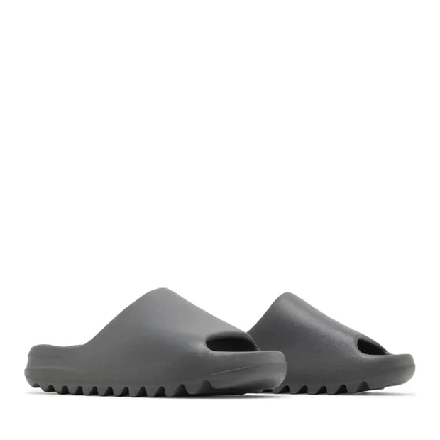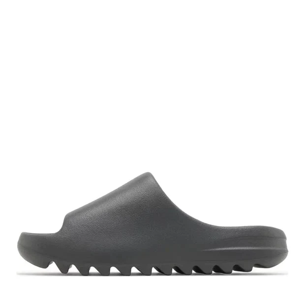 The adidas Yeezy Slide ‘Granite’ accentuates the sandal’s sleek, modern lines with a tonal dark grey finish. Built with a solitary piece of lightweight and durable EVA foam, the slip-on delivers a comfortable fit, thanks to the combination of a wide strap upper and soft footbed. The latter is embellished with adidas’ three-stripe logo, representing the only bit of exterior branding. The outsole features strategic groove placement for improved traction and a smooth, natural ride.
