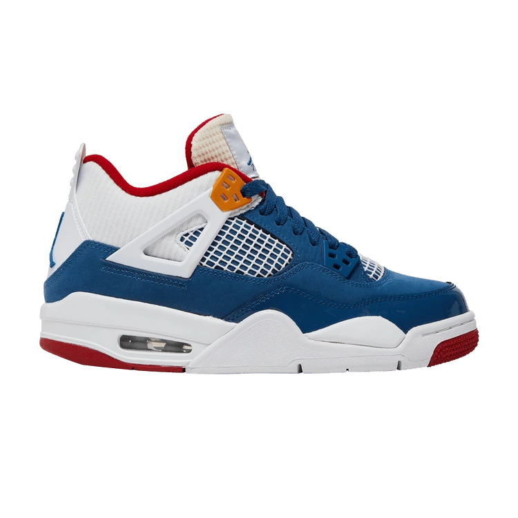 Built for big kids, the Air Jordan 4 Retro GS ‘Messy Room’ showcases a colorful design inspired by a child’s disheveled living quarters. Lined in red textile, the upper features blue nubuck construction with a tonal forefoot overlay in glossy synthetic leather. Contrasting white accents settle on the padded collar, quarter panel netting and TPU support wings topped with molded orange eyelets. Jumpman branding adorns the tongue and heel tab. Anchoring the sneaker is a white foam midsole, fitted with visible Air-sole cushioning and supported by a two-tone rubber outsole.