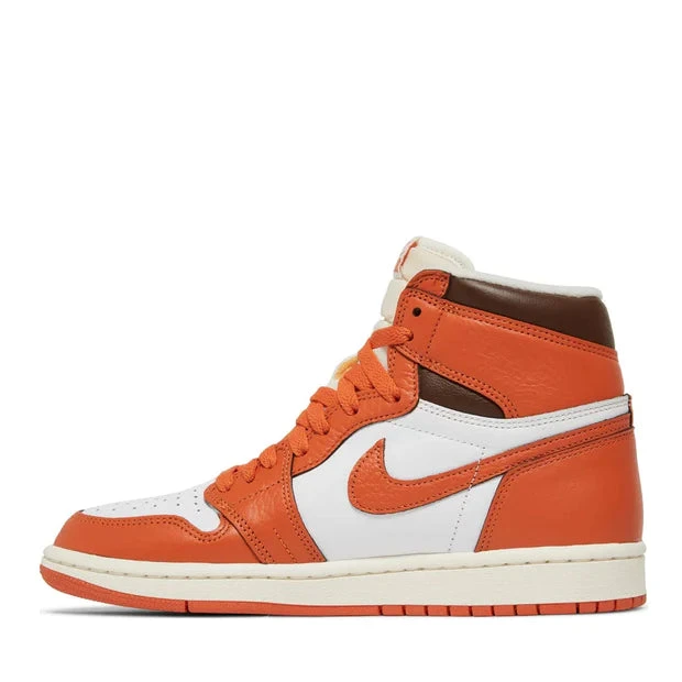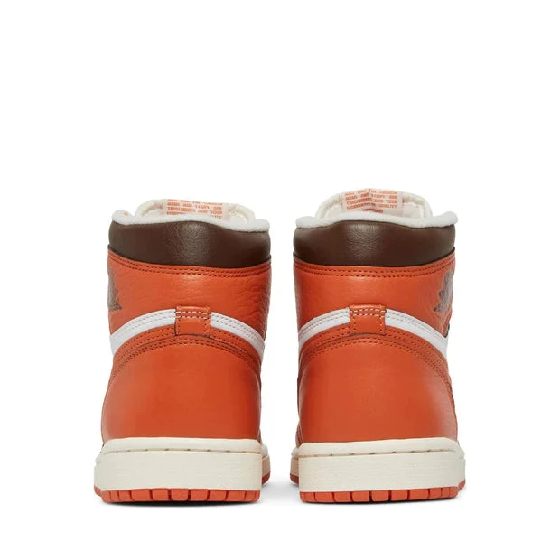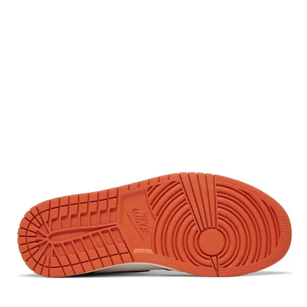 The women’s Air Jordan 1 High OG ‘Starfish’ brings back the signature hue unfailingly tied to the ‘Shattered Backboard’ colorway from 2015. The all-leather upper features a white base, contrasting orange overlays, and a high-cut collar in chocolate brown. A woven Nike Air tag embellishes a lightly padded nylon tongue in a vintage off-white finish. The aged aesthetic is repeated on the rubber midsole, fitted with an encapsulated Air-sole unit in the heel and supported underfoot by an orange rubber outsole.