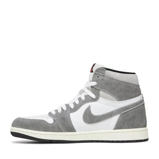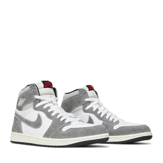 The Air Jordan 1 Retro High OG ‘Washed Black’ gives the heritage silhouette a refreshed build in neutral tones. The high-top dons a white leather upper with grey suede overlays and a color-matched Swoosh. A lighter shade of grey suede is utilized on the high-cut collar, which is overlaid with an ankle flap marked with the iconic Wings logo. Atop the breathable nylon tongue, a woven Nike tag in black and red delivers a solitary pop of color. Underpinning the sneaker is a vintage off-white midsole, supported underfoot by a grippy black rubber outsole.