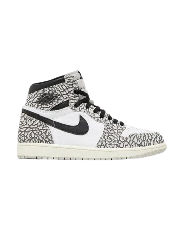 The Air Jordan 1 Retro High OG ‘White Cement’ showcases the signature design feature of the Air Jordan 3: namely, Tinker Hatfield’s unique elephant print, composed of irregular lines etched throughout the high-top’s grey leather overlays. They’re contrasted by a white leather base and black leather construction on the high-cut collar and Swoosh. Additional branding elements take the form of a woven Nike Air tongue tag and a Wings logo stamped on the lateral collar flap. Encapsulated Air-sole cushioning enhances the aged off-white midsole, supported underfoot by a grey rubber outsole.