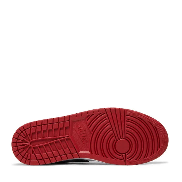 The 2023 edition of the Air Jordan 1 Retro Low OG ‘Black Toe’ brings back a coveted original colorway initially released in 1985. The low-profile silhouette utilizes an all-leather upper, featuring a white base with forefoot and heel overlays in black and Varsity Red, respectively. Branding elements include a black signature Swoosh, a woven Nike tongue tag, and a black Wings logo stamped on the red leather heel tab. The shoe rests on a durable cupsole that pairs crisp white sidewalls with a grippy red rubber outsole.