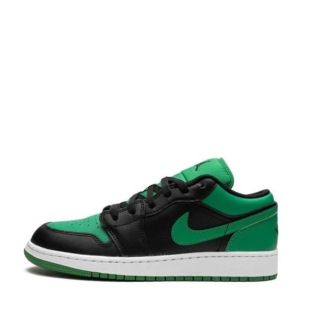 Originally released in 1985, the Air Jordan 1 Low is a popular silhouette that offers a streamlined look in a variety of bold colourways. This iteration arrives in a black and dark green colour enhanced with a Swoosh logo on the sides. Here, a signature Jumpman logo embellishes the tongue while the Air Jordan Wings logo is embroidered on the heel counter.