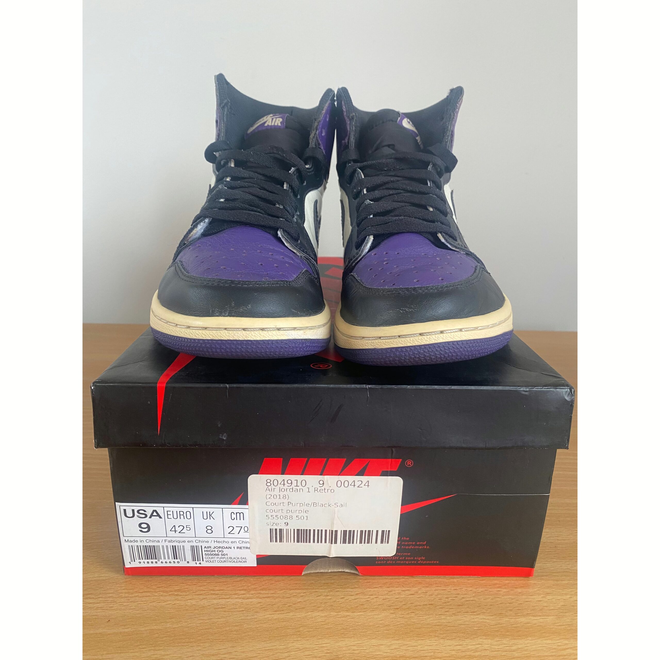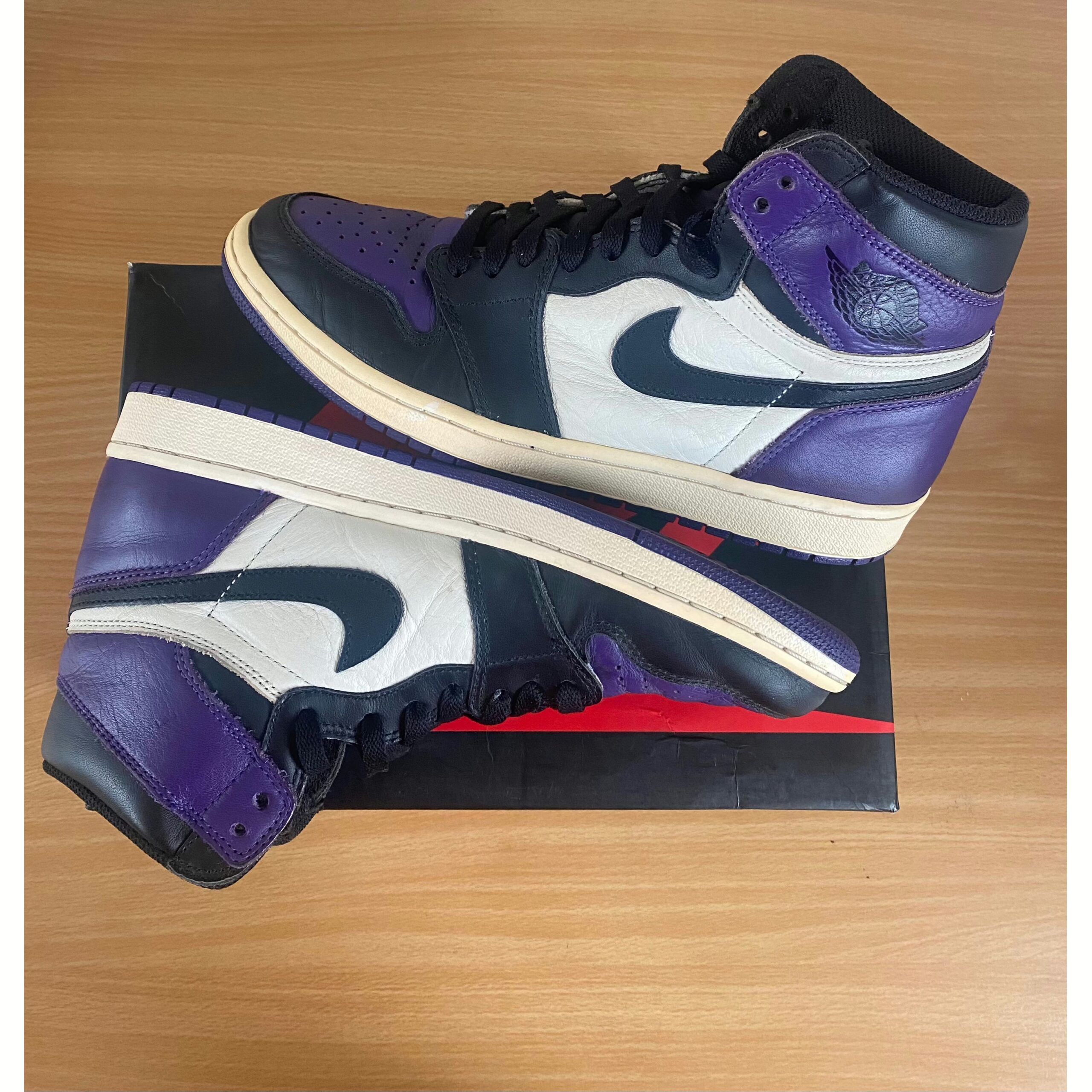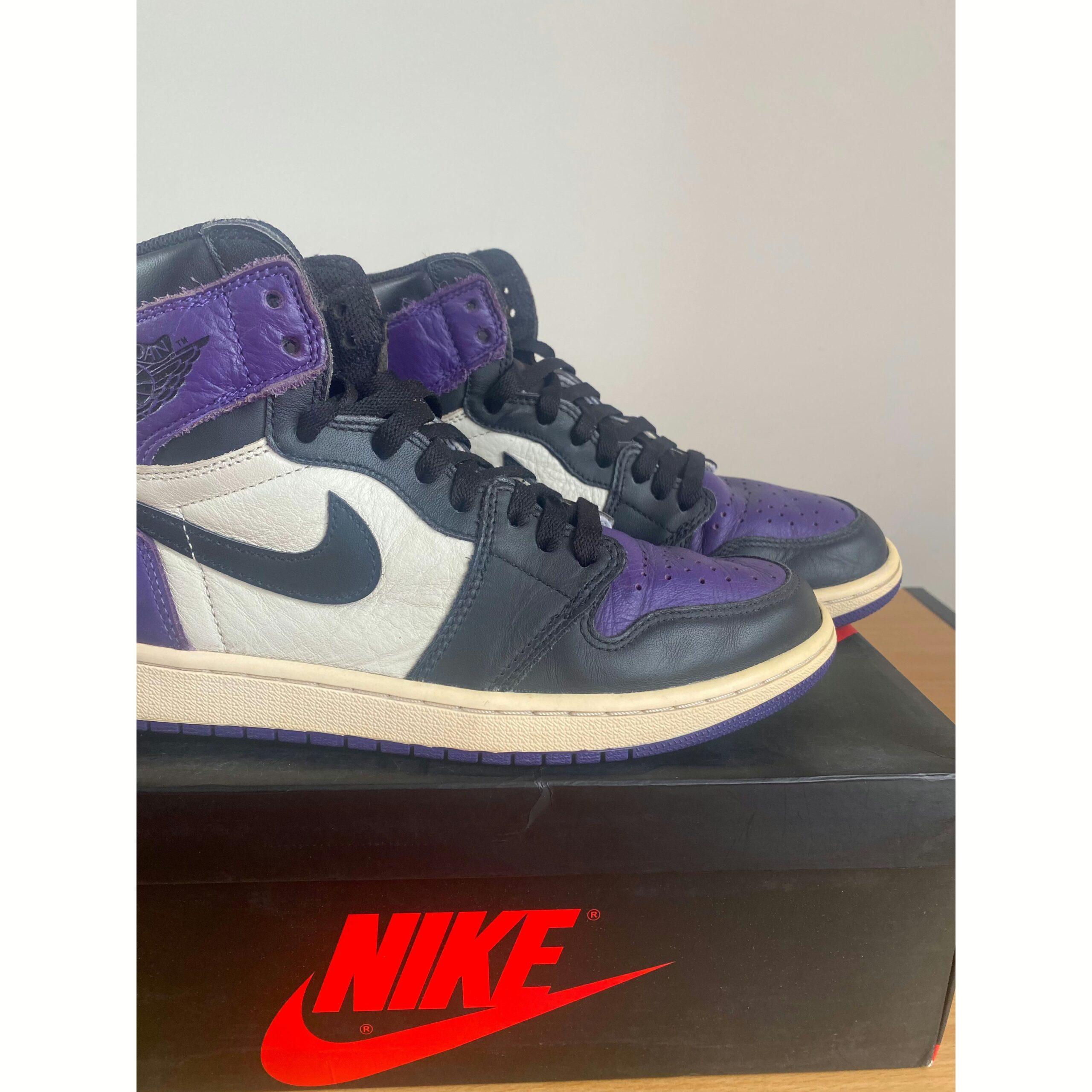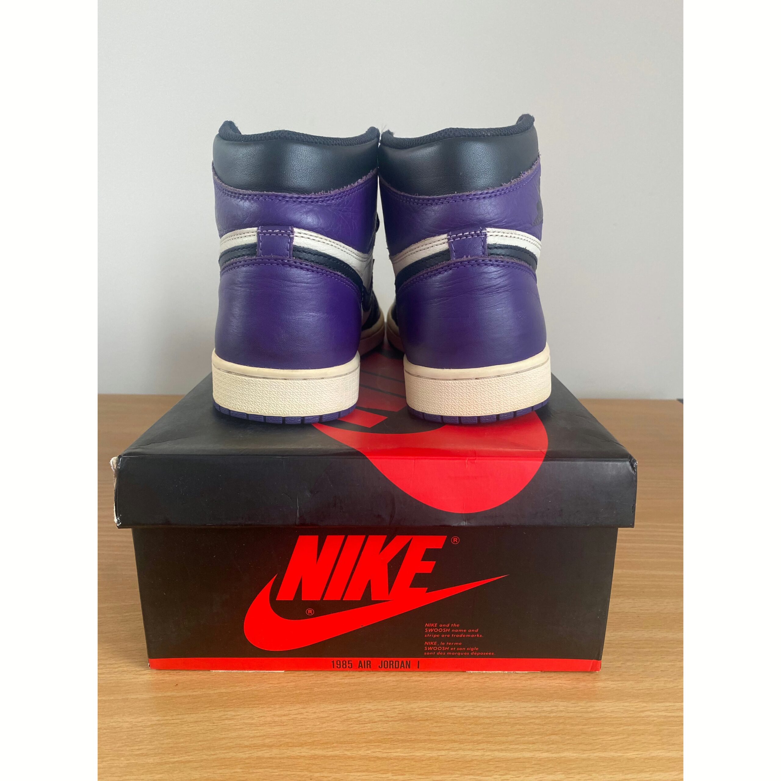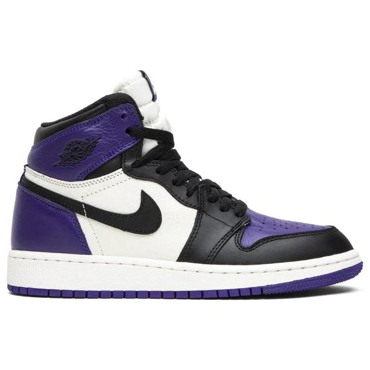 What screams both royalty and NBA’s rookie of year in 1985? The Air Jordan 1 Retro High Court Purple. Showcasing a magical splash of color, these shoes have a leather upper in black, sail, and court purple. Showing similarities with the “Bred Toe”, the Air Jordan 1 Retro has a black “Swoosh” with a white midsole and court purple sole.