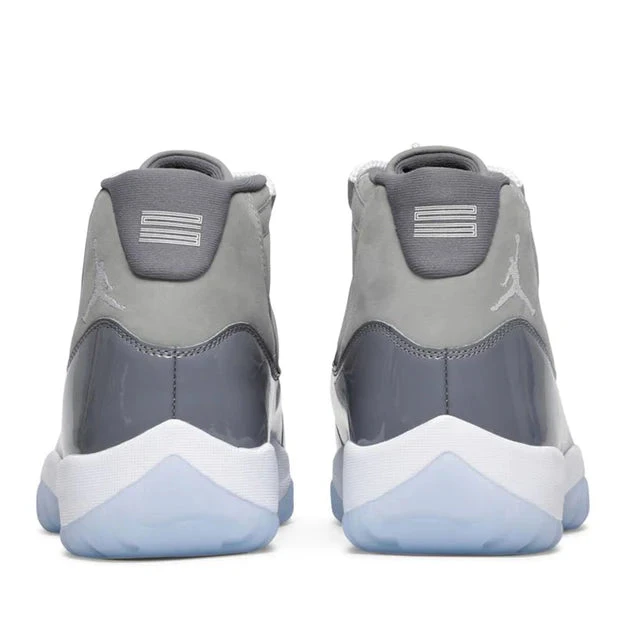 The 2021 edition of the Air Jordan 11 Retro ‘Cool Grey’ brings back a colorway first released in 2001 and retroed again in 2010. Celebrating the 20th anniversary of the original launch, the mid-top build is faithful to the original, featuring a nubuck upper with tonal webbing lace loops and a shiny patent leather overlay, all rendered in tones of Medium and Cool Grey. A white Jumpman logo is embroidered on the lateral ankle, while a stylized ‘23’ decorates the heel notch. Lightweight cushioning is provided by a full-length Air-sole unit housed within a white Phylon midsole. Underfoot, a translucent outsole reveals a carbon fiber spring plate for enhanced on-court responsiveness.