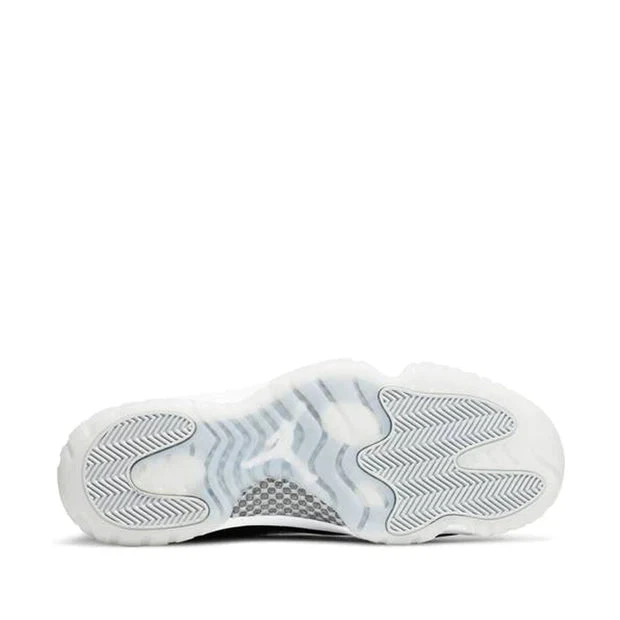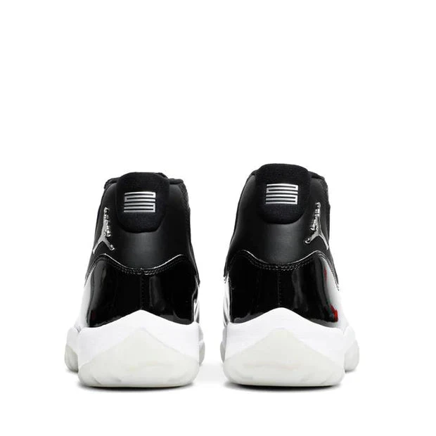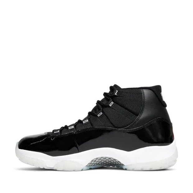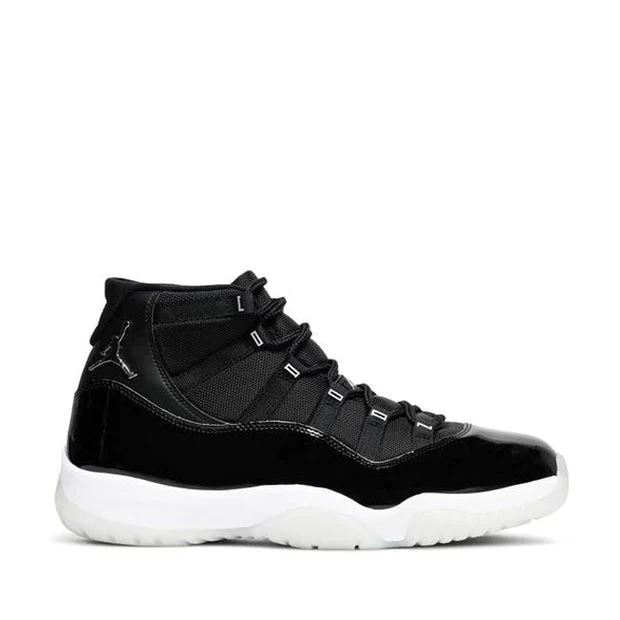 The Jordan 11 Jubilee showcases everything Hatfield envisioned for the sneaker 25 years ago; a performance product that can be worn easily both on and off the court. Features such as the two types of leather on the upper with hits of metallic lettering and Jumpman emblem add luxe elements to the athletic sneaker. A white midsole and foggy translucent outsole deliver contrast to the black sneaker. Carbon fiber plating on the sole provides stability and power to the wearer’s feet on the court.