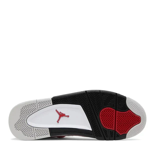 Constructed with white premium leather uppers, a mix of fire red and black is applied throughout, while the iconic mesh detailing and Jumpman logo retain their traditional placements. Sat atop a black, white, and fire red midsole, the style stays true to its roots, showcasing why the Jordan 4 model remains one of the most iconic Jordan models of all time.