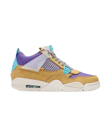 The Air Jordan 4 Union LA Desert Moss features a Dark Iris mesh upper with Desert Moss suede overlays and translucent lace loops. From there, turquoise heel tabs and Union LA woven tabs on the lateral side complete the design.