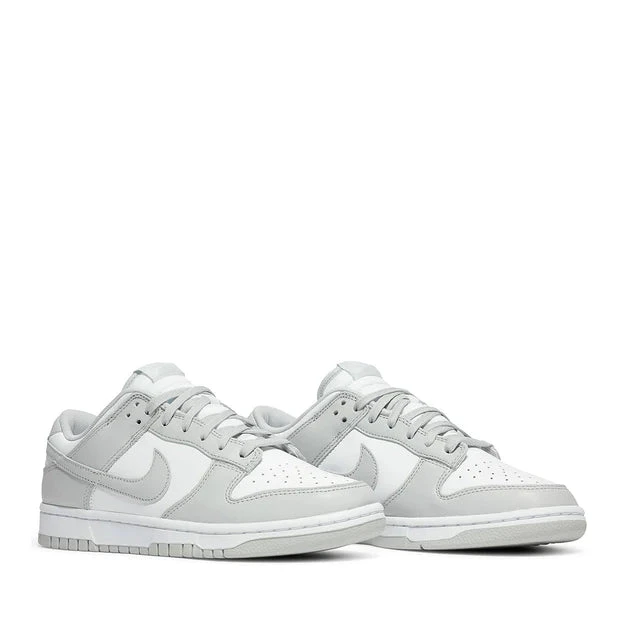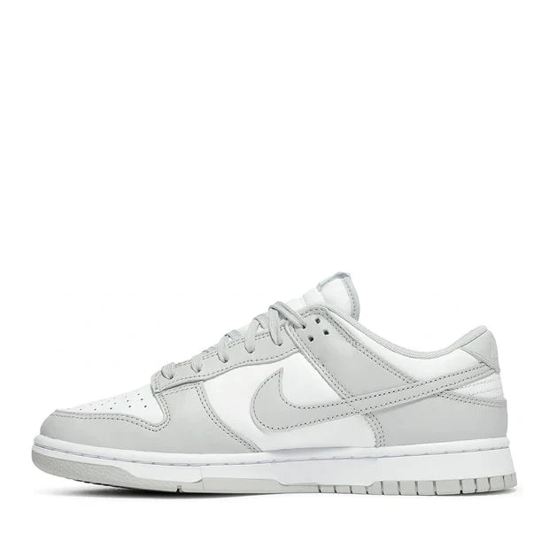 The Nike Dunk Low Grey Fog features a white leather upper with Grey Fog leather overlays and Swooshes. From there, a matching woven tongue label, heel tab, and sole completes the design