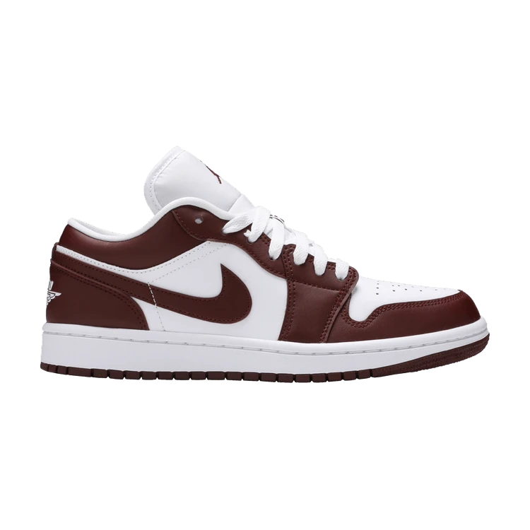 The women’s Air Jordan 1 Low ‘Bronze Eclipse’ treats the iconic model to an elemental two-tone color scheme. The low-top utilizes a leather upper that pairs a crisp white base with contrasting burgundy overlays along the forefoot, collar and heel. Color-matched accents include ‘23’ lace keepers and a Jumpman icon embroidered on the white nylon tongue. A classic Wings logo decorates the sneaker’s back heel. A rubber cupsole, complete with a Nike Air unit encapsulated in the heel, anchors the low-profile silhouette.