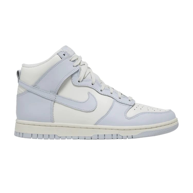 The Nike women’s Dunk High ‘Football Grey’ delivers an understated colorway of the retro hoops shoe originally released in 1985, featuring an outsole borrowed from the Air Jordan 1 and an upper design redolent of both the Air Jordan 1 and Nike Terminator. Here, the leather upper makes use of an off-white base with contrasting overlays in a subtle pale blue finish. A padded mesh collar combines with a nylon tongue to deliver a comfortable fit.