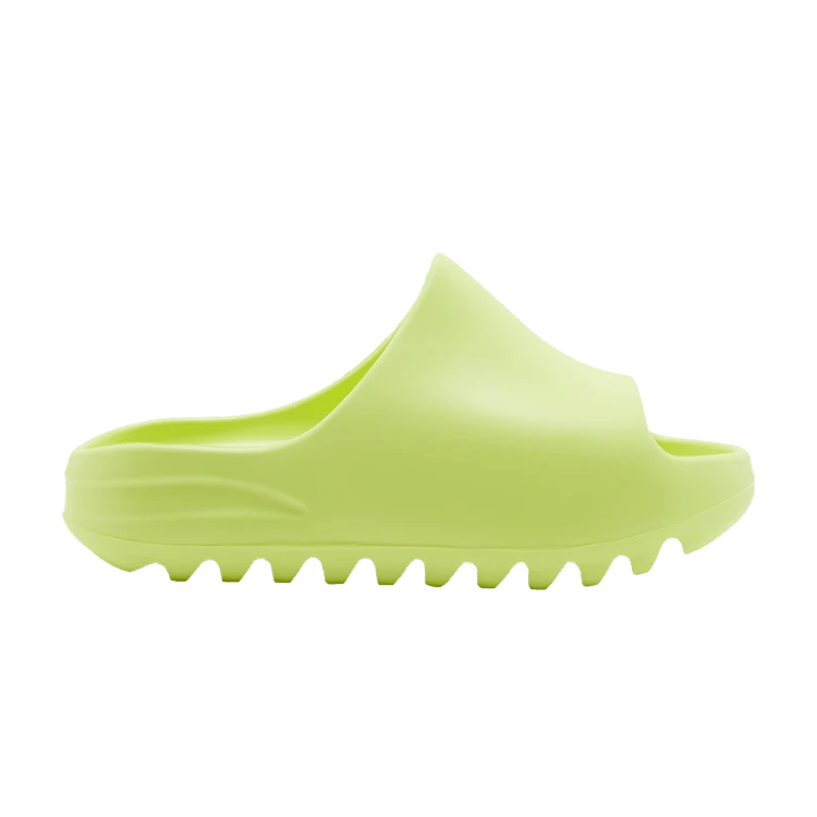 The adidas Yeezy Slides Kids ‘Glow Green’ delivers a vibrant departure from the Yeezy brand’s typically muted aesthetic. A fluorescent green hue saturates the plush sandal, built with injected EVA foam that’s both lightweight and durable. The minimalist design is devoid of any exterior branding, save for adidas’ Three Stripes logo debossed on the soft footbed. Underfoot, deep horizontal grooves are built into the outsole, offering both enhanced traction and impact absorption.